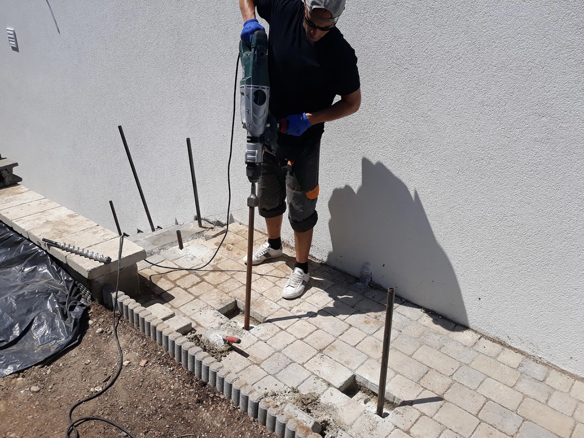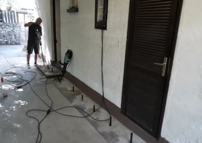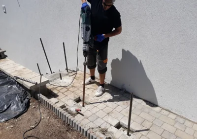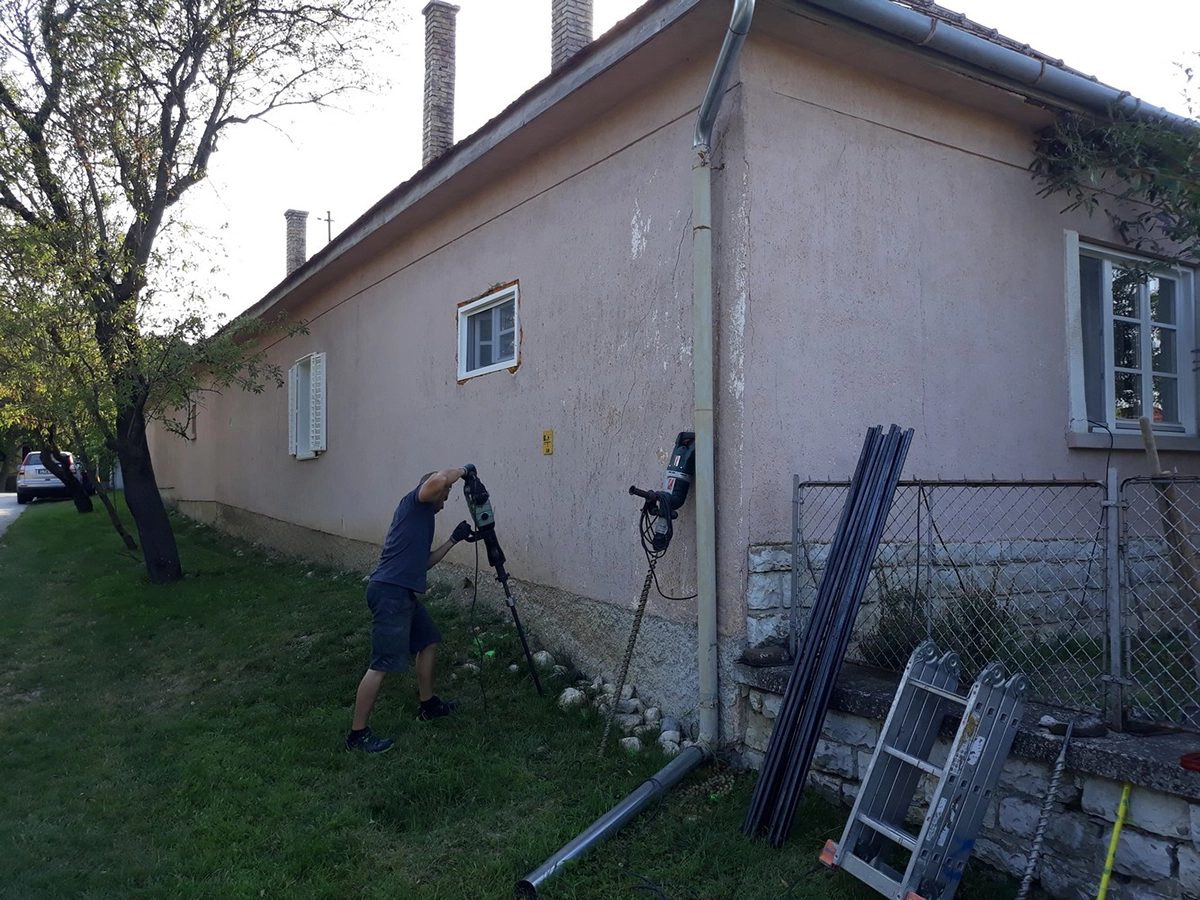 Fúrásokat végzünk a kijelölt helyeken – általában 30–70 mm átmérőjű furatokkal.
