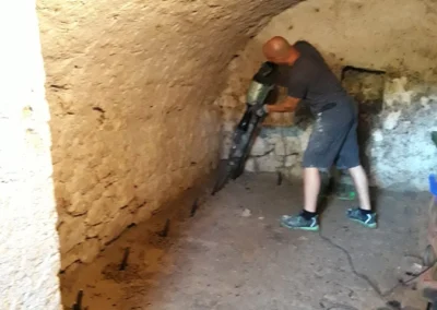 Üregek, pincék, felhagyott csatornák, vízvezetékek tömedékelése cement-, bentonit- és műgyanta bázisú tömedékelő anyagokkal. Bedolgozás a körülményektől függően kézi illetve mixeres keveréssel, szivattyúval.